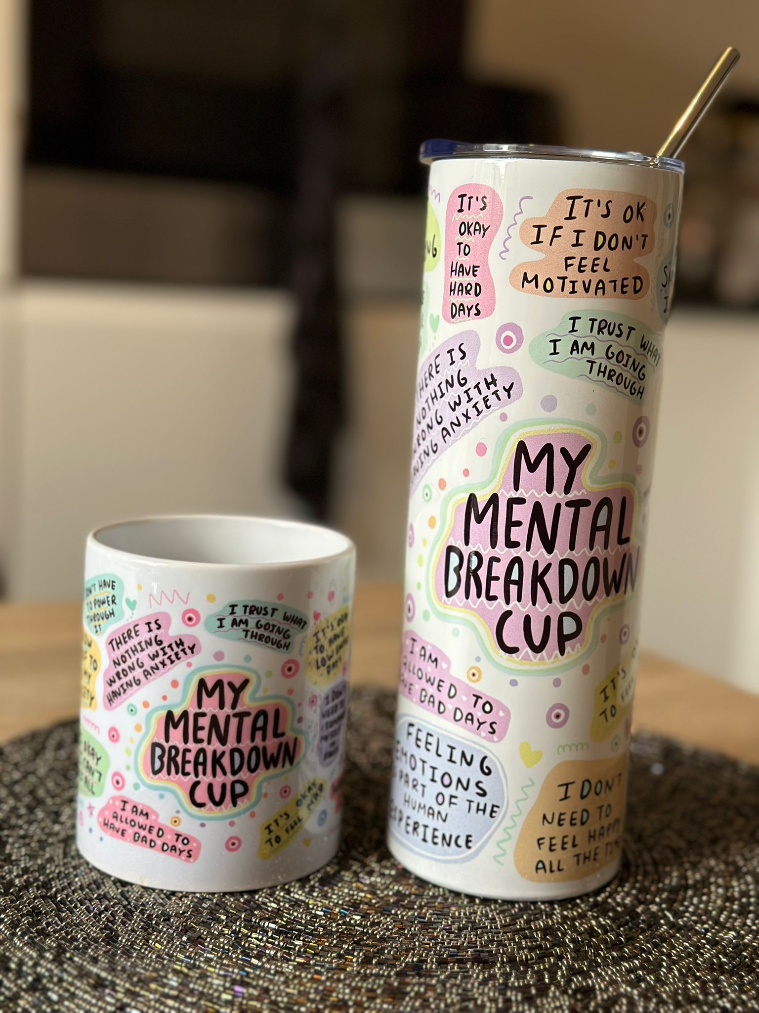 Jeder von uns hat mal einen Mental Breakdown. Genau HIERFÜR ist dieses Bundle aus Tasse und Thermobecher gedacht. Das süße Design sorgt sofort bessere Laune und bringt dich hoffentlich dazu, nicht aufzugeben und wieder aufzustehen. Sie eignen sich natürlich auch hervorragend als Geschenk.
