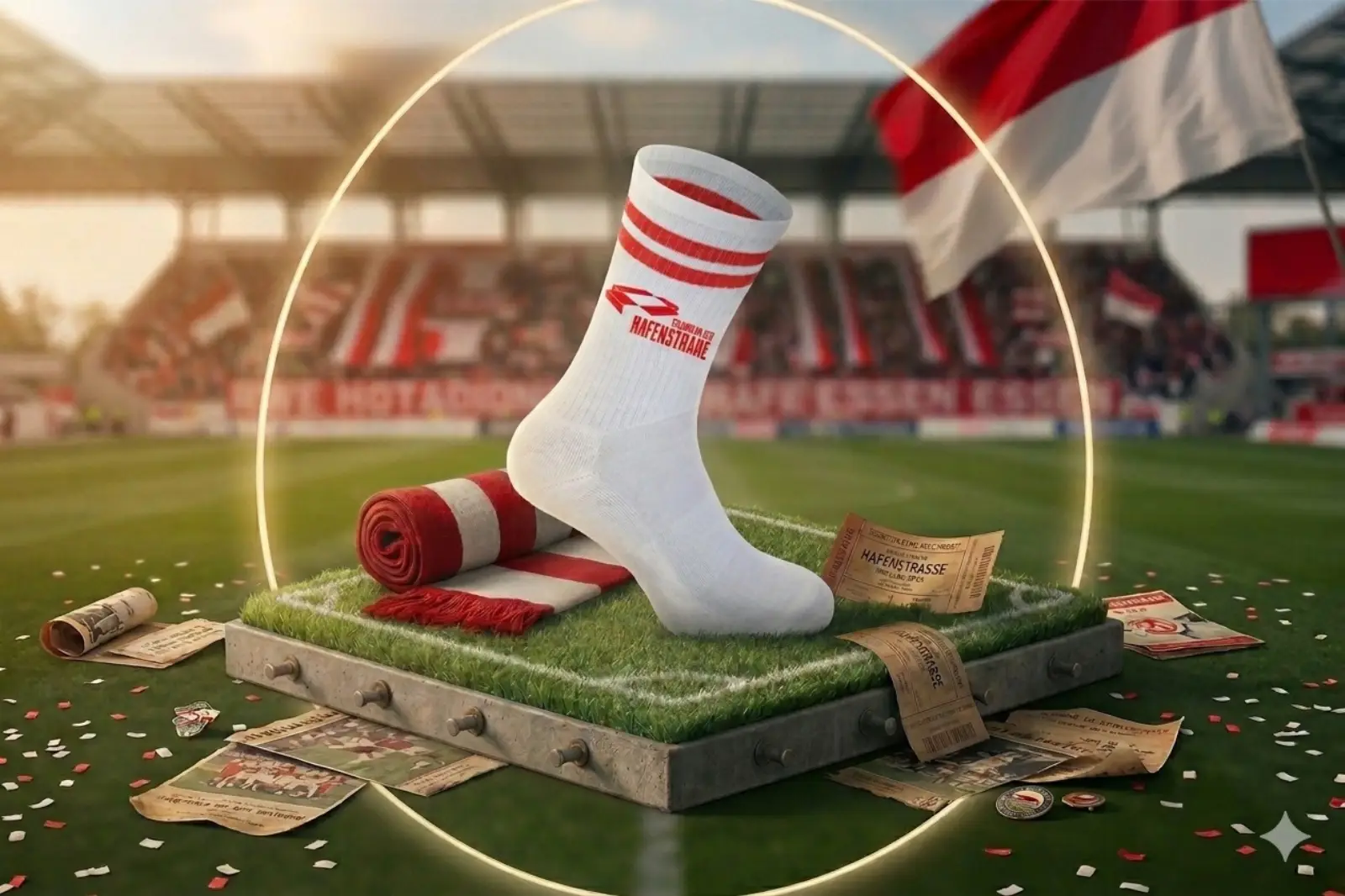 Das Stadion an der Hafenstraße ist genau so ein Ort – Emotion, Geschichte und Leidenschaft in Beton gegossen. Und genau dieses Gefühl kannst du jetzt tragen.